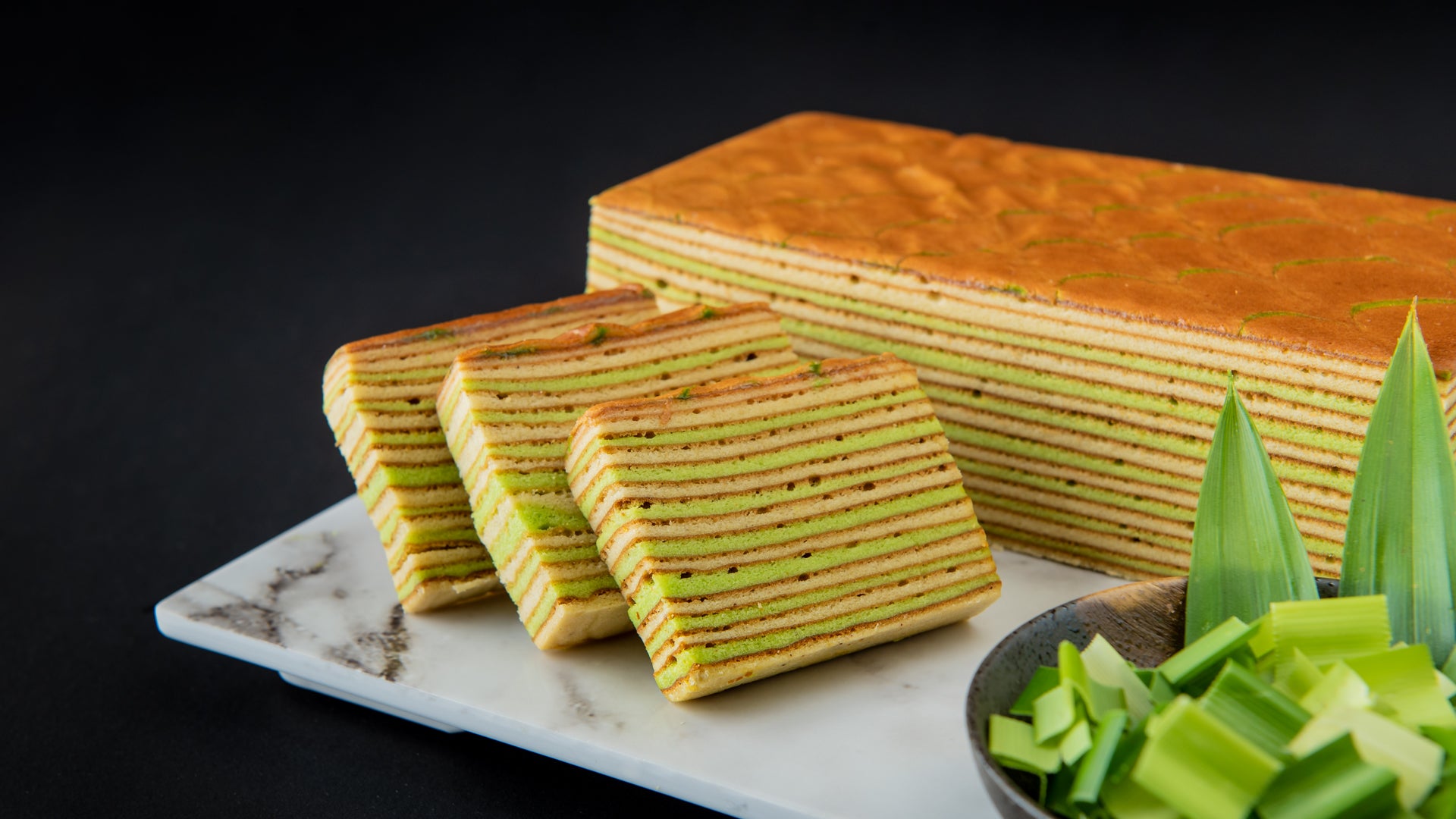 The gentle aroma from Pandan leaves juice blend in this soft, light, and moist layered cake, remind us of our childhood golden times.